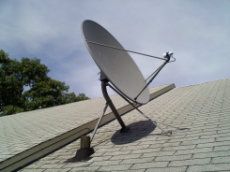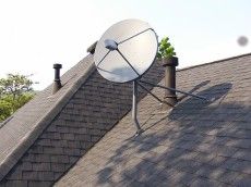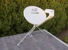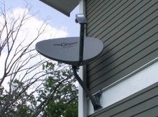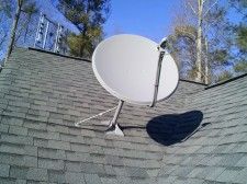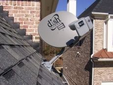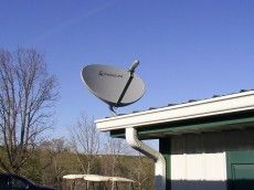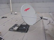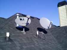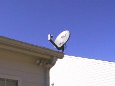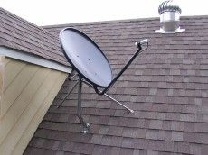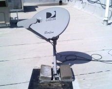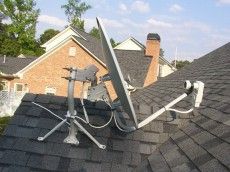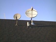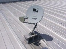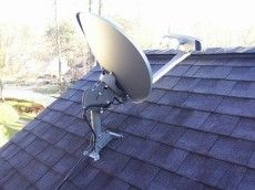 < Dish Network Dish 500 roof mount. Tilted to pick up 2 satellites at the same time satellites 119 & 110.