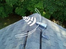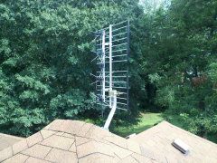 < This was an installation of a customers purchased antenna. He said it worked for a while until the trees leaves came out. It didn't perform well due to its small size for the are he lived in. It worked best in this spot in his roof. It wouldn't work 3 ft. left or right of this spot. I always sell an antenna that has plenty of gain to spare to avoid signal drop-outs. Since the audio cuts out with the video digital TV is unwatchable when the signal breaks.