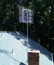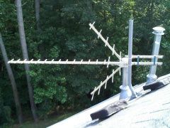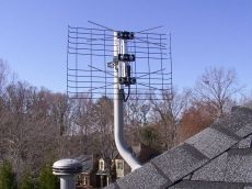 This a nice install of a 4-bay Uhf HD antenna on the chimney mount next to a phase-3 HD DirecTV dish. If you're in a good location, a 4-bay antenna can work very well. But you always need the most signal gain you can receive.