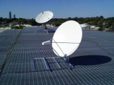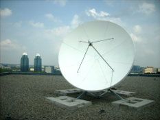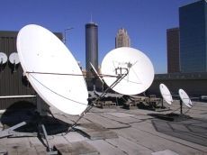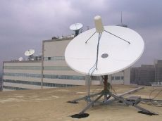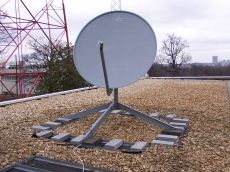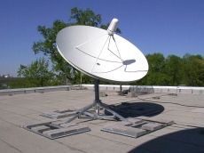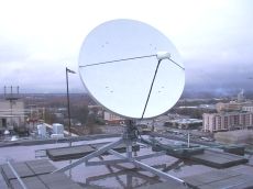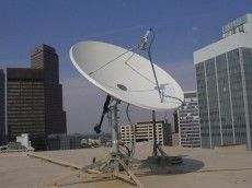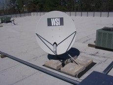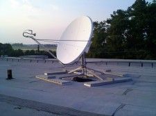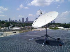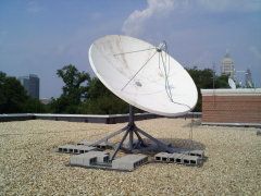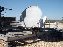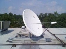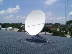 < This was a new install we did for CBS WGCL Channel 46 in Atlanta of a Ku-Band system. This is on the roof of the main building. There are two 4.2 meter dishes to the left out of view, you can see an actuator arm in the picture. This was a 1.8 meter all steel Patriot dish.