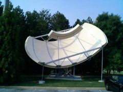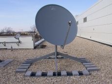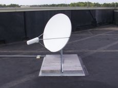 < 1.2 meter Ku-band dish on a non-pen roof mount. This is for a national church conference. Many sites across the country have had this dish installed.