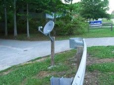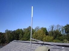 < This is a cell phone range extender antenna, the white shaft. This customer was in a bad cell where he lived. He ordered a cell phone range extender. This is the outdoor antenna we installed on our tri-mount. The RG6 cable from this antenna is attached to a transeiver in his attic to boost his cell phone signal in his home. It worked.
