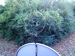 This was an experiment for a customer in rural Cumming, GA 45 miles from Atlanta. I installed a Christan satellite system for this customer who stopped regular Satellite TV. I realized they no longer had any Atlanta or network TV. So I offered to make this 8" Uhf loop antenna from a piece of coax hoping to get "a" channel. Unexplainable but every major channel came, signal over 70%. Shouldn't be possible because of it's physical size ! This was a true sweet spot.
