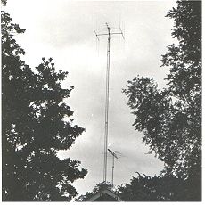 < The above tower was blown down to the ground during a severe storm. The guy lines snapped. The owner, still a teenager, re-erected it 20' higher to 150' with a Quad antenna. The TV antenna was not replaced. This was the tallest structure in his small Missouri town. In 1973, the tower was sold to an area farmer for his 2-way radios. The owner, now in early college, and with the help of a hired tower climber {the owner's parents didn't like him climbing the tower}, when home from college for the summer, he disassembled this tower and moved it to the new owner's farm and re-erected it. It is still standing today, 36 years later, last we spoke to him.