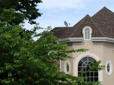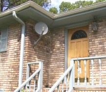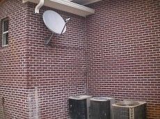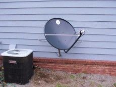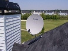 < This is one of many questionable installations we see while out on jobs. Many installers don't have ladders, so they have to find a dish location they can reach conveniently. This was a real install and not a joke photo! There are many other places on this home that this dish could have been installed for trouble free reception of DirecTV. This was just probably the easiest for the installer. At SATPRO, we always try to find a dish location not visible from the front street of the home.