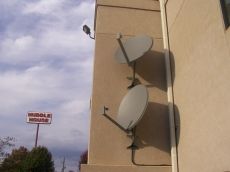 < Commercial Restaurant, A 10' & 8' C-Band, our install of a 1 meter Ku-Band for Setanta Sports, a DirecTV dish is in back.
