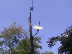 < This is on of the worst international FTA Ku installs. The dish was poorly mounted atop a 30' light pole the owner had GA Power install just for the dish the installer said was needed to clear trees. The installer assembled the dish wrong, used indoor connectors outdoors that rusted out and shorted, used the wrong LNB bracket then tried to rig it to work, it didn't. Sad thing is, the dish could have been mounted on a regular 6' ground pole mount in the same spot.