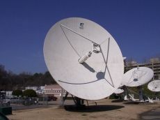 < This is one of the many TBS uplink dishes, a dish that transmits the programming you watch up to the satellite to be resent to the down links of Dish Network, DirecTV or your TV station in the U.S.A., South America and Europe. This is an 11 meter dish. Hidden behind is a 15 meter dish. Out of view are 25+ other dishes.