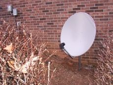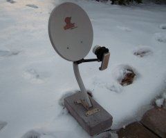 < This was a quick and temporary install of a 10" dish for DirecTV. This was for Governor Nathan Deal's Inauguration Jan 2011 during the sever snow storm that shut Atlanta down for a few days. It was placed next the building and overhang to prevent snow from getting on the dish. 2 more block were atop. It was used at an overflow site next to the capital for invited guests. It's signal was feed to several large flat panel TV's that aired the Inauguration live GPTV. DirecTV can be received with as little as an 8" dish, a strong satellite.