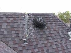 < This is a dual system we sold and installed for this customer. DirecTV HD SWim SlimeLine Dish for DirecTV and a 30" FTA international system to two TV's for international channels. The cables enter the attic from under an existing vent flashing, one of the preferred routes into an attic.