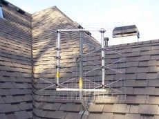This was a tall chimney mount for the antenna. Though this was not the best location for reception the "Mrs." had the final say on it's location since the TV towers were located toward the front of the home. The mast had to be extended to clear the roof line. You can't really go more than about 8' to be safe.