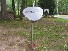 < This is a DirecTV World Direct dish for the DirecTV international channels. This dish picks up satellites 101 & 95. This install was for the Greek package. DirecTV is offering more international programming. Dish Network has many international channels also. All for a subscription fee. The lot had so many trees the dish had to be mounted on a pole to find a clear opening.