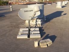 This was a 1 meter Andrew's dish atop a restaurant used for data. The installer didn't bring any ballast blocks to weigh down the mount, so he took a couple of blocks off of a nearby DirecTV and Music Choice dish mount. A wind gust moved the other dishes and this one that resulted in signal loss for the customer's business and a service call. Every tech hates lugging heavy blocks to a roof, but it has to be done. This dish mount requires 8 blocks to properly weigh it down "NOT 2".