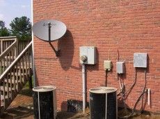 Dish Network Dish 500 with a second Dish Network Dish 300 (lower) for international or Atlanta local channels on satellite 61.5. Since local Atlanta channels are now on other satellites the second dish isn't use much nowadays. But still used for international channels.