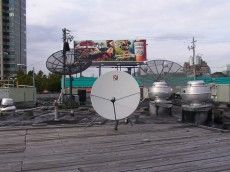 These are a few of the dishes at CNN on top of CNN Center in downtown Atlanta where CNN News originates. These are all receive only dishes. We repointed two dishes, one on this 14 floor roof and one on the 4th floor roof. See the satellite photo below from another job at CNN.