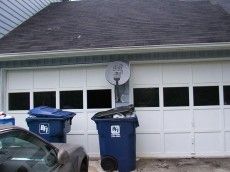 Here, someone mounted the dish on the wall space between the garage doors! At least you know where your dish is...