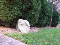 "Why are you taking a picture of that rock?", asked the joggers as I took this photo. This is actually a small dish cover for DirecTV or Dish Network. It is made of a composite material that satellite signals can pass through. A cover like this can be used when an owner doesn't want the dish visible, like here at the top of a driveway. Or to comply with a home owners or neighborhood association.