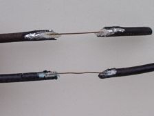 This is from two separate jobs several months apart. The customers complained of signal trouble over a period of months. Some days a channel would work and some days it wouldn't. One of these cables was chewed up by a chipmunk under the house and the other by a squirrel at the roof gutter. The rodents nibbled all but the center wire. Recently, we saw another, where a rabbit nibbled the center wire into. As the rodents nibbled from week to week, the signal got worse and worse...