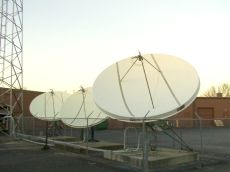 < These are some of the dishes at Atlanta WB channel 36. We repointed the small 1.8 meter dish you can see half of in the back left of the picture.